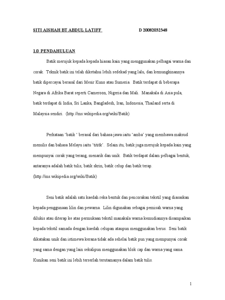 Laporan Lawatan Sambil Belajar Ke Kilang Batik Pdf